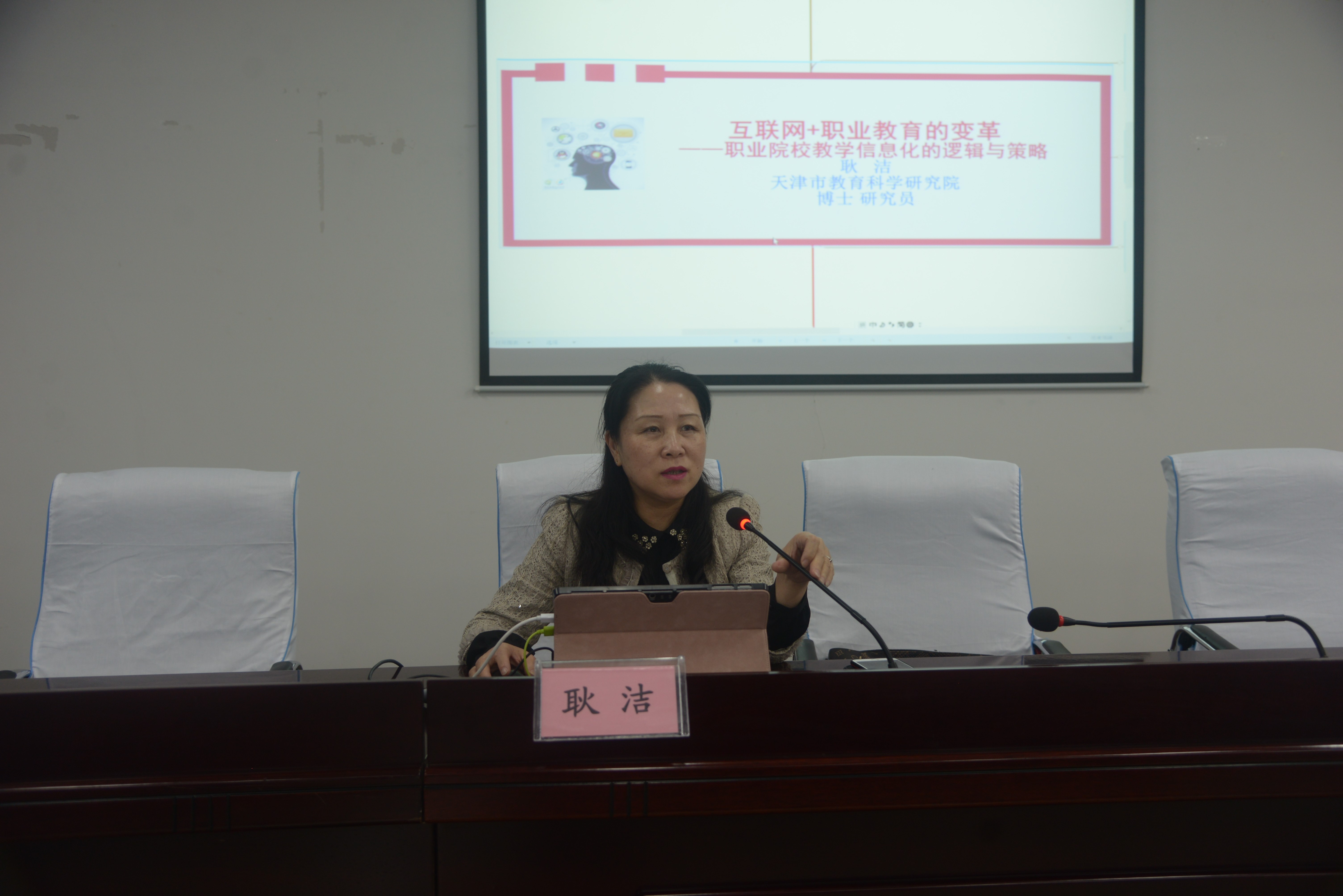 两位主讲人均是国家职业教育领域专家,赵伟是教育部职业技术教育中心所研究员,中国成人教育协会副秘书长,职业教育质量保障与评估研究会副理事长;耿洁是天津市教育科学研究院博士、研究员,中国职业技术教育学会信息化工作委员会副秘书长,教育部职业院校信息化教学指导委员会教学研究专门委员会委员,京津冀职业教育协同发展研究中心(天津)主任。两位专家多年从事职教研究工作,对职业教育都有深刻认识,为与会教师作了精彩讲座。