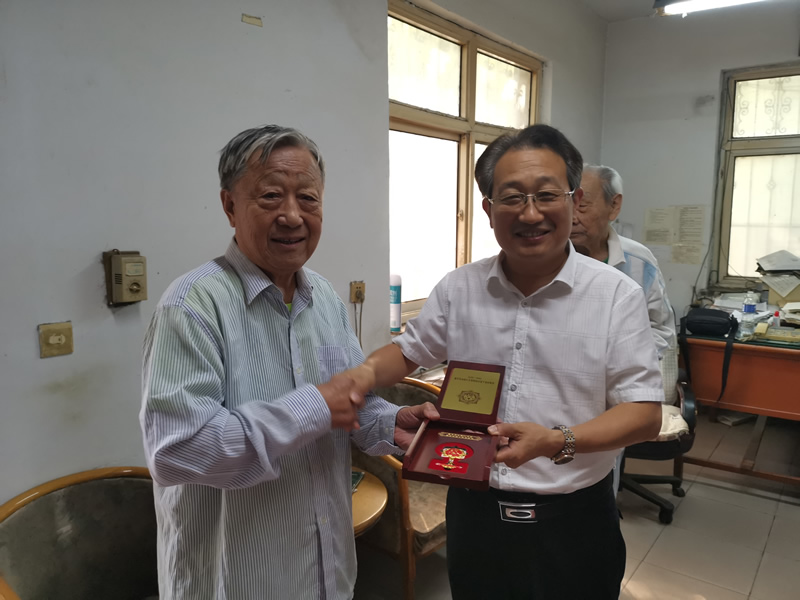 9月27日上午,学院党委书记张晓辉,副院长张兆隆及人事处处长贺明一行到学院家属区看望、慰问离休教师,并为离休教师颁发“庆祝中华人民共和国成立70周年”纪念章。