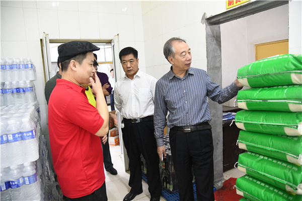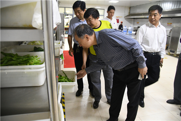 傅恒杰一行走访了学院食堂备餐间和食材储备室,与工作人员进行交流,详细询问了菜品种类、食品原材料把控、人员管理、卫生服务等情况,并听取了工作人员对食堂工作的详细汇报。