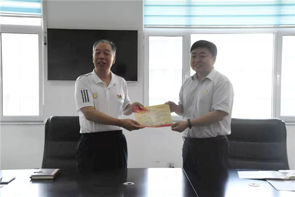 办公室主任张能云向办公室干事王小芳赠送“生日贺卡”