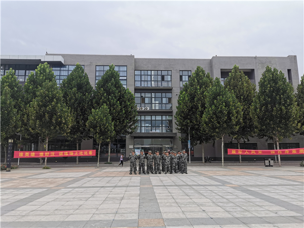 在武装部新兵集训期间,我院也开展了新生教官训练。本次教官训练向新兵集训对标看齐,高标准、严要求完成训练任务,以军人的姿态迎接即将到来的新生军训。学府广场、田径场、食堂东侧广场都传来了嘹亮的口号声,学院化为热火朝天的爱国主义训练基地。