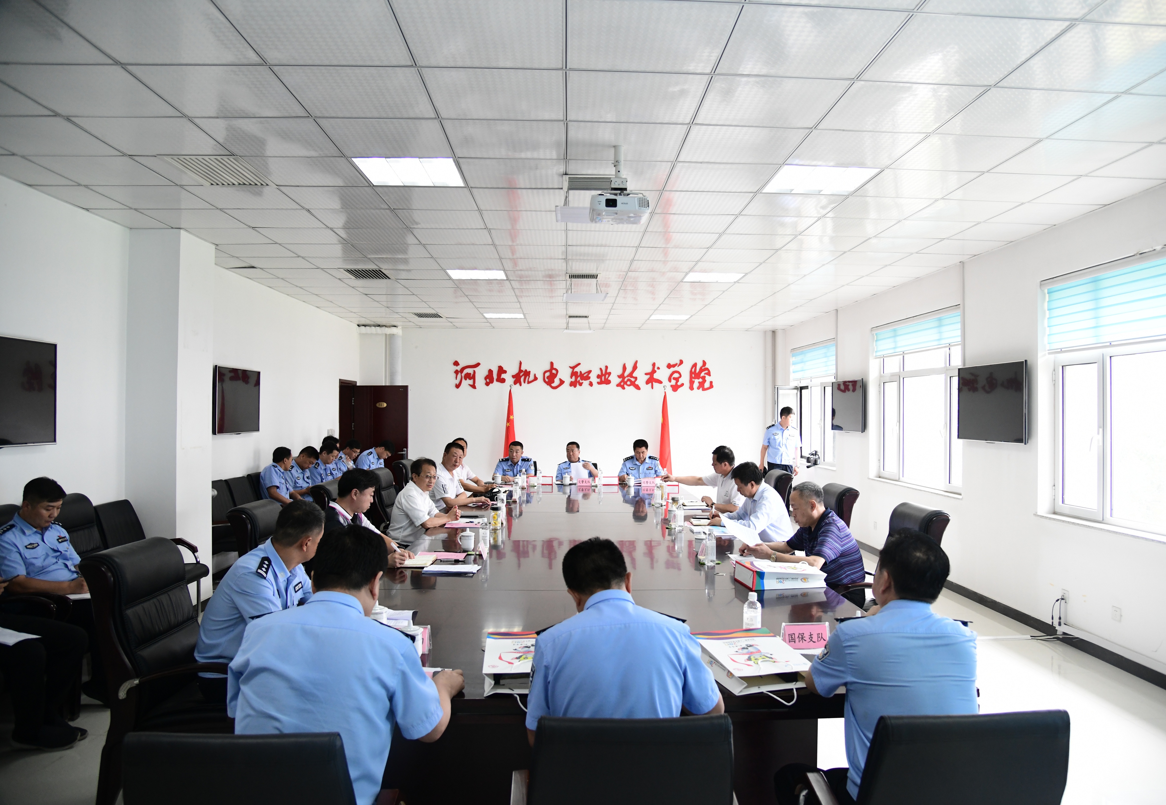 7月9日下午,邢台市政府副市长、公安局长陈少军,常务副局长王英刚,副局长谢继运等领导带领公安部门各警种负责人冒雨到我院调研、指导、检查大运会安保工作。学院党委书记张晓辉、副院长曹振军陪同调研,院办公室、安保部门人员一同参加。