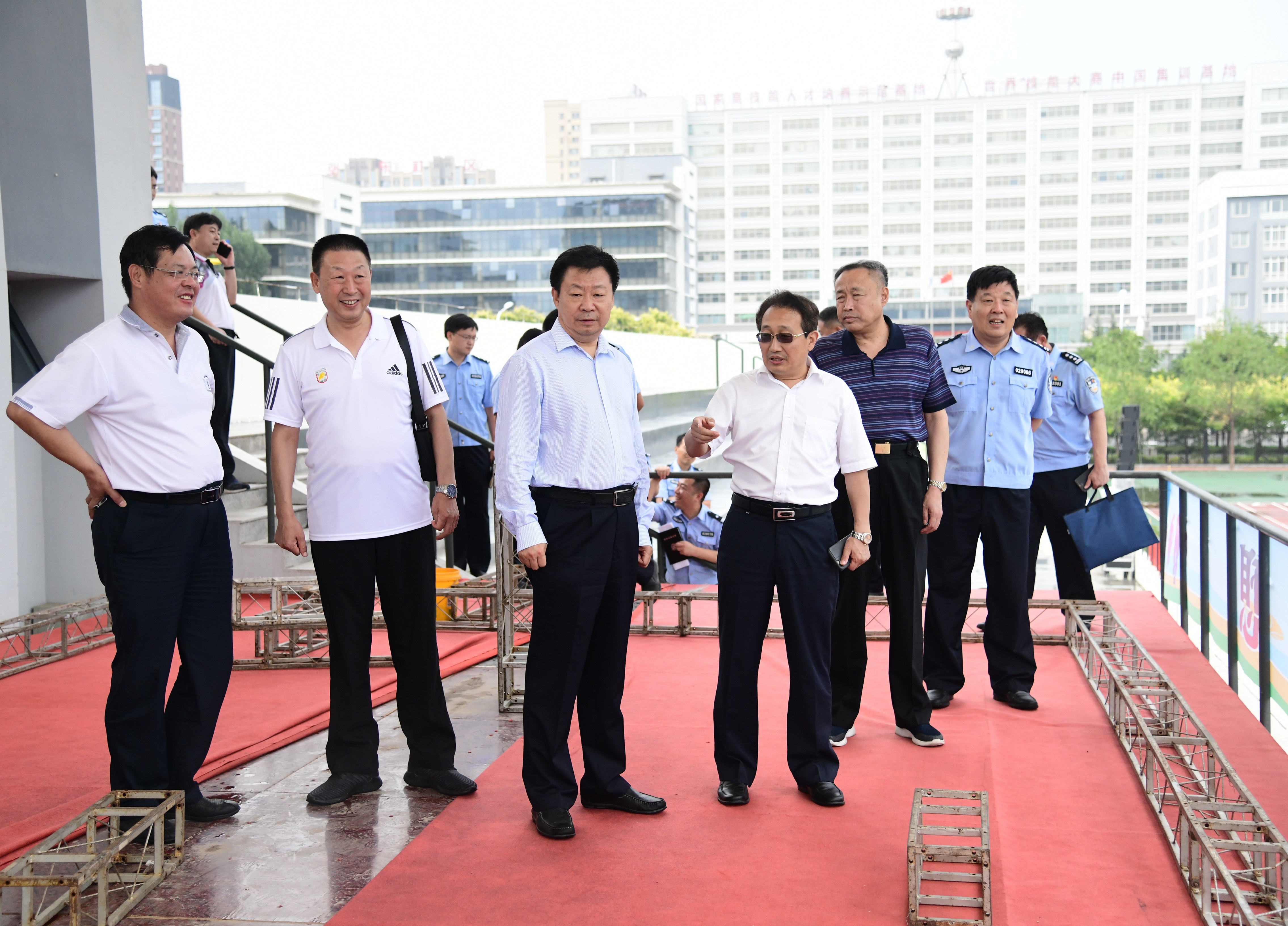 调研会后,张晓辉率学院领导陪同陈少军一行实地查看了比赛场地和开、闭幕式现场,陈少军对学院的安保工作及其他各项工作表示满意。