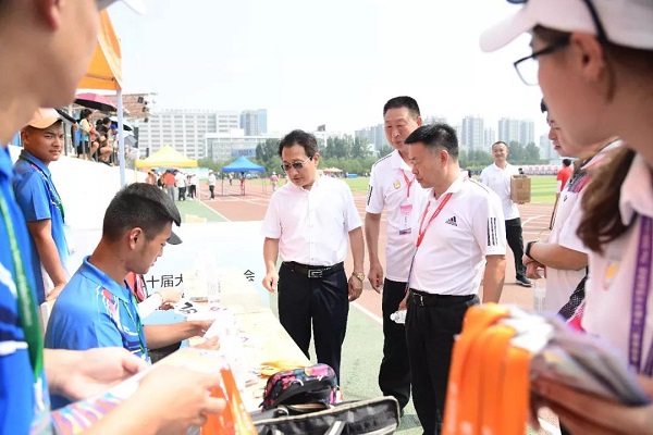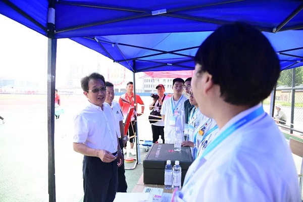 张晓辉亲切地询问参赛选手的食宿情况与比赛目标,他提醒大家天气炎热一定要注意安全,并勉励选手们拿出必胜的信心和勇气,发扬顽强拼搏的精神,在大运赛场上追逐青春梦想,取得满意的成绩。