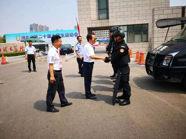 7月14日,我院党委书记、河北省第二十届大学生运动会组委会副主任张晓辉,省教育厅体卫艺处处长、本届大运会组委会执行主任马志雁,学院副院长、本届大运会组委会执行主任王振京,学院副院长曹振军和相关部门负责人到主赛场和各个分赛场看望、慰问参赛选手及服务人员。