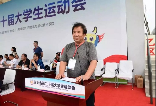 王廷山致闭幕词,他代表河北省教育厅向邢台市委、市政府,向全体协助单位,向我院的领导和广大师生员工表示衷心感谢。他指出,为办好本届大运会,省、市领导高度重视,全力支持,河北机电职业技术学院精心安排,周密组织,保证了大运会顺利举办,取得了圆满成功。他引用习近平总书记的讲话“要树立健康第一的教育理念,开齐、开足体育课,帮助学生在体育锻炼中享受乐趣、增强体质、健全人格、锤炼意志”,他希望全省高校大力发展体育传统和特色优势项目,广泛开展体育竞赛活动,为全面落实立德树人根本任务,培养德智体美劳全面发展的社会主义建设者和接班人作出更大贡献。