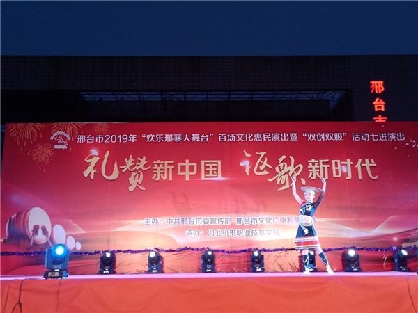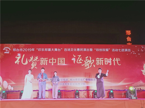 “欢乐邢襄大舞台”百场文化惠民演出是邢台市委市政府实施的一项重要民心工程,我院积极参与在为群众带来了一场精彩文化盛宴的同时,也展现了机电学子昂扬向上的青春活力。