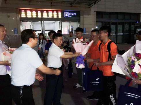 6月14日晚11时,得知获奖消息的王振京副院长及信息工程系书记籍宇、副主任马文静、副书记贾铁峰在邢台东站迎接从贵州参赛载誉归来的师生们。参赛选手一出站,王院长就将鲜花送到参赛师生的手中,并与大家亲切握手表示祝贺。