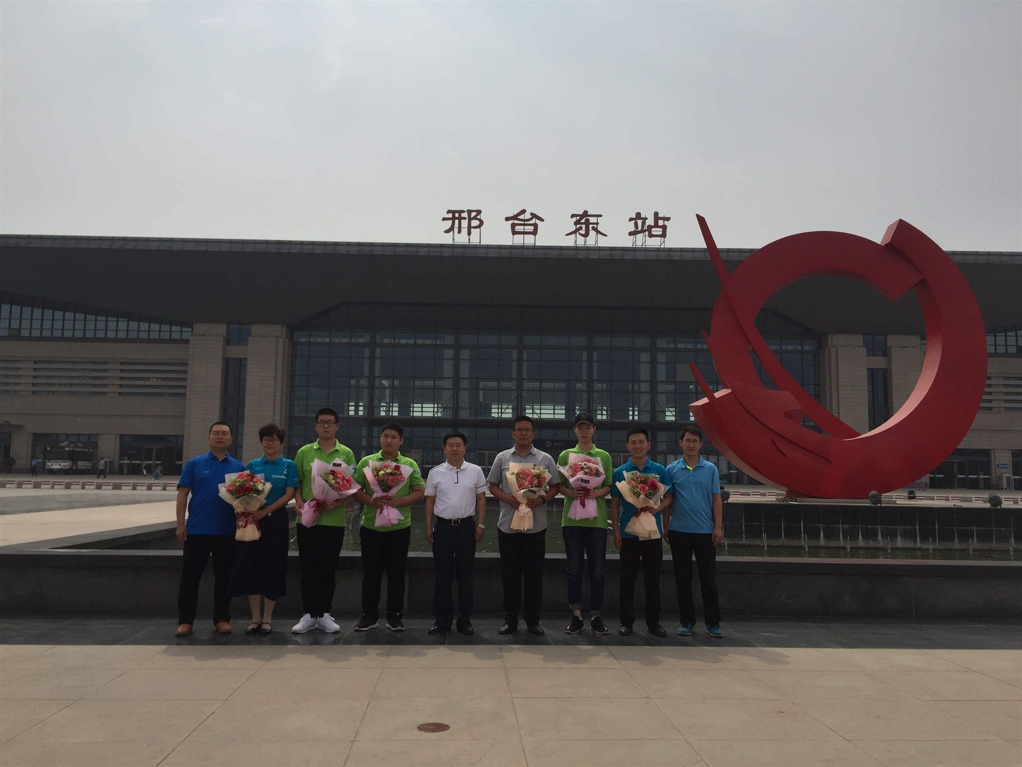 6月4日中午,得知获奖消息的王振京副院长代表学院在邢台东站迎接从许昌参赛载誉归来的师生。参赛选手一出站,王院长就将鲜花送到参赛师生的手中,并与大家亲切握手表示祝贺。