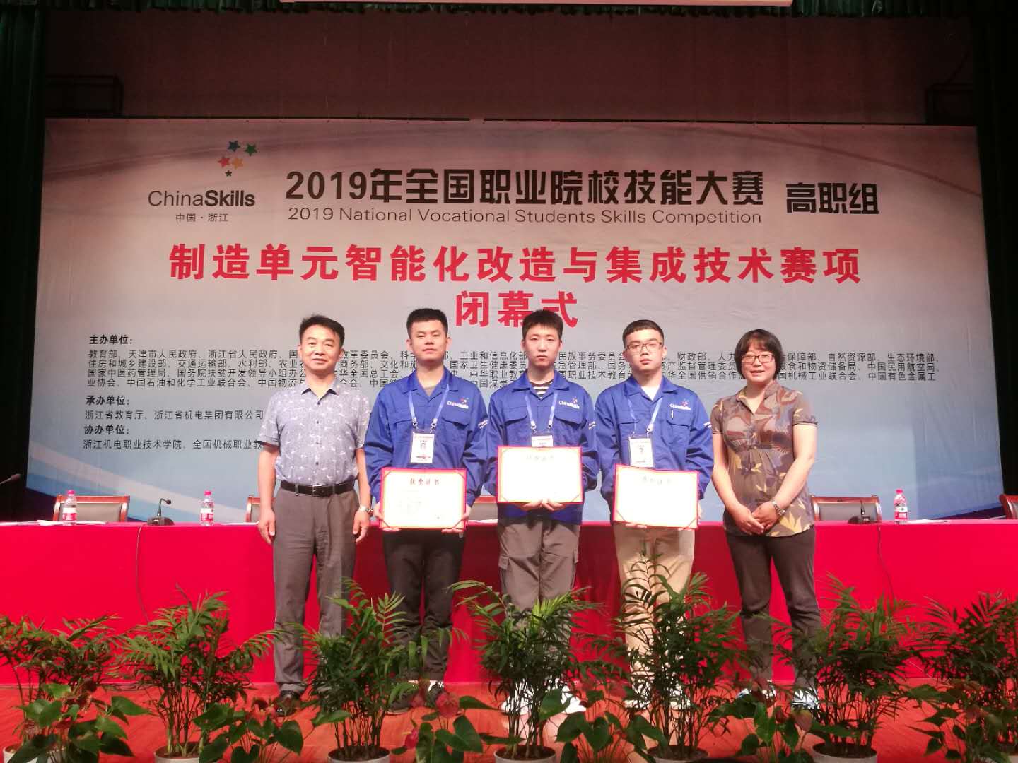 6月1日,全国职业院校技能大赛制造单元智能化改造与集成技术赛项在杭州圆满落幕。本次大赛共有来自31个省市自治区的73支队伍参赛,我院派出由机械工程系主任胡占军带队,孙志平、张良贵老师指导,机械制造与自动化及数控技术专业学生马宏林、李轩、张恒组成的代表队参加该赛项,经过两天的激烈角逐,最终获得2019年全国职业院校技能大赛(高职组)制造单元智能化改造与集成技术赛项团体二等奖,全国总排名第十。