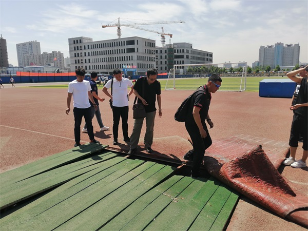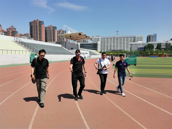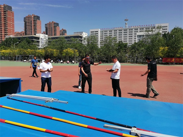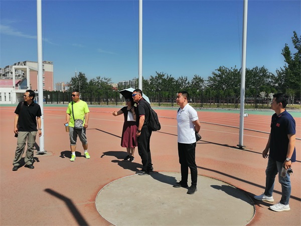 赵伟一行先到邢台学院分赛场实地察看了链球、标枪、撑杆跳和全能项目场地,又到我院主田径场察看各项目比赛场地。