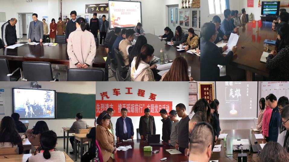 为扎实推进“两学一做”学习教育常态化、制度化,强化党员党性观念和宗旨意识,激励党员树立崇高理想和坚定信念,增强党员的自豪感和荣誉感,激发广大党员干事创业、创先争优的热情。近期,我院统一部署,各党总支(直属支部)开展了“不忘先烈遗志,携手砥砺前行”党性教育主题党日活动。