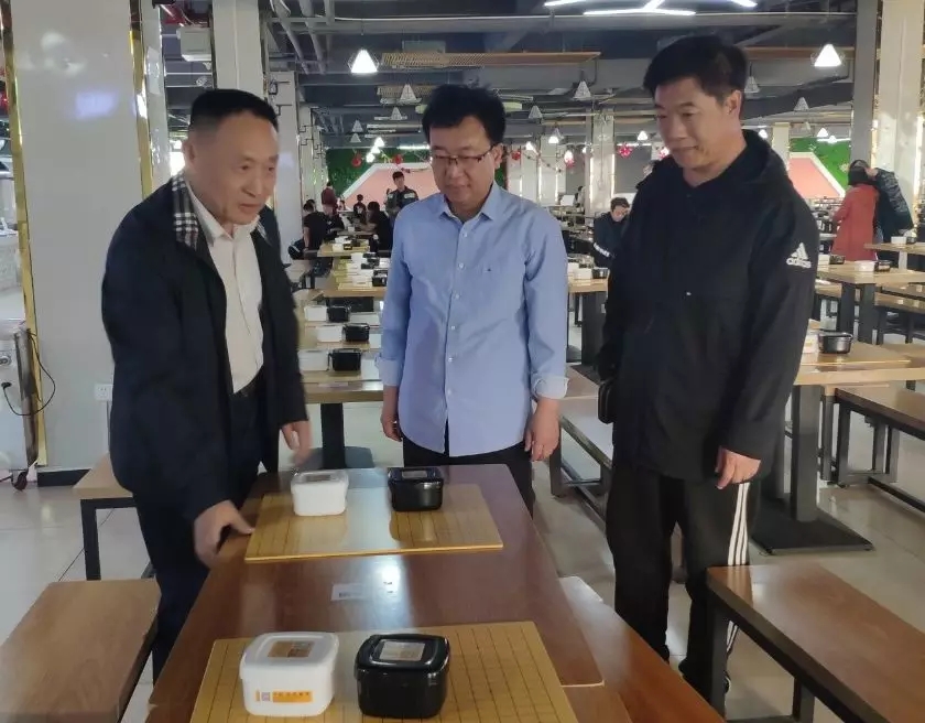 在全体工作人员、裁判人员、志愿者和参赛选手的共同努力下,为期两天的比赛在我院美其食餐厅顺利进行,赛场内秩序井然、气氛浓厚,赛场外车辆人员得到妥善安排。比赛期间,院长傅恒杰到现场检查比赛组织运转和安全责任落实情况,并与参赛棋手亲切交流;学院各部门紧密配合,200余名志愿者参与本次活动,我院食堂共接待选手及家长4000余人次,为其提供了细致、完善的服务。