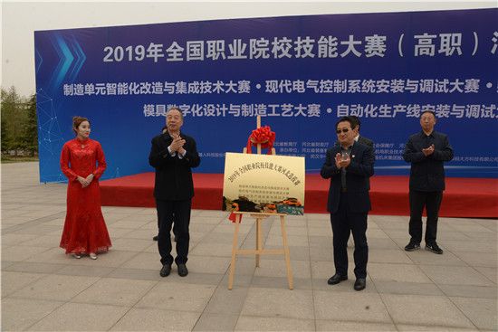 党委书记张晓辉、院长傅恒杰为2019年全国职业院校技能大赛河北省技能大赛选拔赛启动仪式揭牌