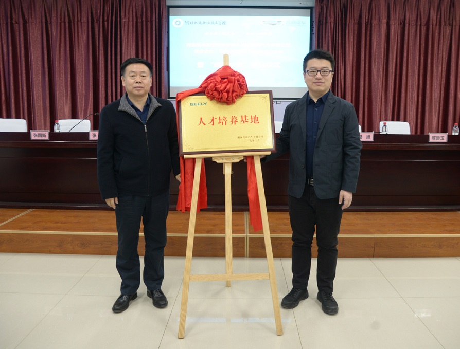 王振京副院长与王利东经理共同签署校企合作签约并为吉利汽车人才培养基地铜牌揭牌