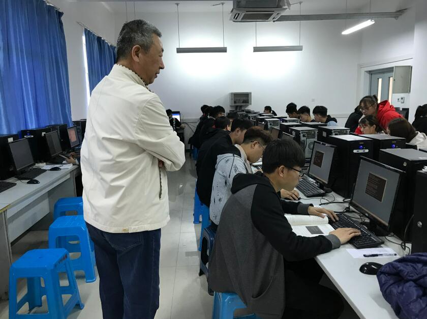 3月27日上午,曹振军来到7号实训楼407教室同网络技术1801班的同学们一起上课。课上,曹振军了解了学生们的学习目标和学习状态,并耐心指导同学们进行练习。下课后,曹振军还与同学们亲切交谈,询问大家的专业学习和大学生活情况,鼓励同学们潜心钻研、刻苦治学,将来为社会做出贡献。