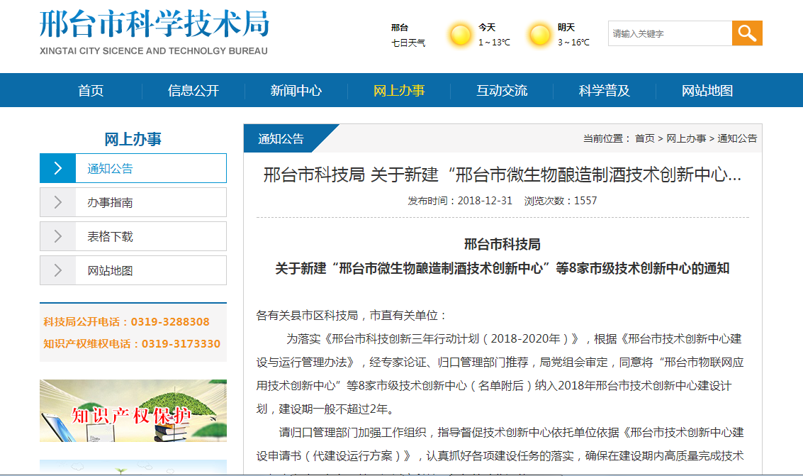 邢台市科技局官网截图