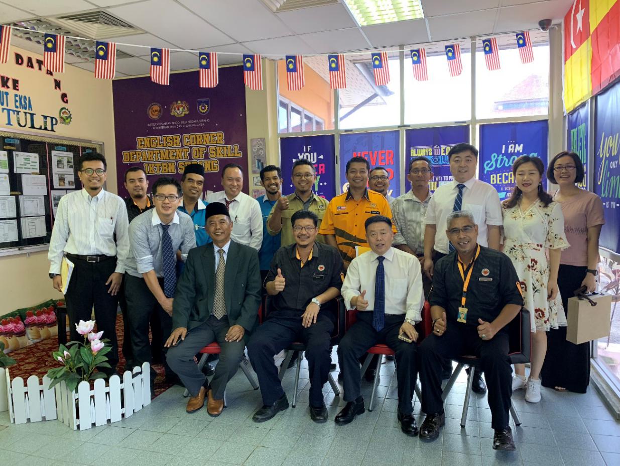 王振京带队会见了马来西亚联邦政府青年体育部(KBS)官员、ARS公司高管、雪邦职业技术学院(IKTBN Sepang)院长、杜顺大职业技术学院(IKTBN Dusun Dua)院长、世纪大学(SEGI)国际部主任、SEGI孔子学院院长和汽车学院(TOC)院长,考察参观了雪邦职业技术学院和杜顺大职业技术学院的校园环境与实训基地,互相交流了办学情况。