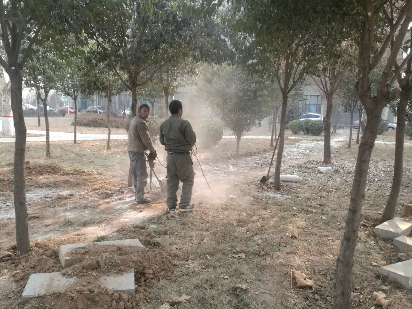 期末考试结束,学生们都已回到家中享受假期的愉悦,我院中经路上,后勤与资产管理处的工人们加班加点展开了紧张有序的施工作业。