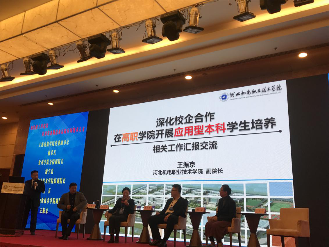 王振京副院长代表学院在论坛上做了“深化校企合作,在高职学院开展应用型本科学生培养”的主题报告,从邢台学院机电工程学院的基本情况、办学特色、专业案例三个方面,详细介绍了学院背景,办学目的、办学特色、人才培养具体实施方法及成效等内容,与会嘉宾对我院本科学院的办学模式、办学特色、办学成效给于了充分肯定,认为我院的办学模式为全国的高职院校探索应用型本科教育提供了宝贵的经验,希望今后与我院就办学思路、专业及课程建设、人才培养等方面开展深入交流及合作。