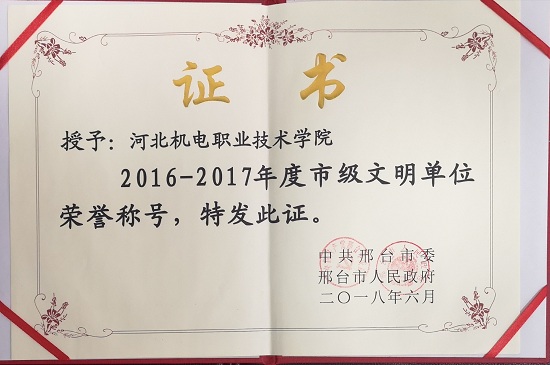 近日,我院荣获“邢台市2016-2017年度市级文明单位”荣誉称号,这是我院在文明建设上的又一新硕果。