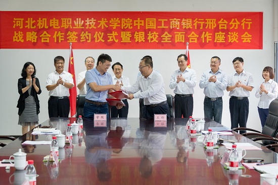 9月18日下午,我院与中国工商银行邢台分行在办公楼310会议室举行战略合作签约仪式暨银校全面合作座谈会。学院党委书记张晓辉,院长傅恒杰,副院长赵国增,中国工商银行邢台分行党委书记、行长李志华,副行长赵卫,副行长赵科出席,双方有关部门负责人参加了签约仪式和座谈会,副院长赵国增主持签约仪式和座谈会。