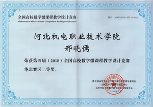 我院基础课教学部数学教研室的邢晓儒、安雪梅、程锋利老师参加了竞赛。邢晓儒老师荣获第四届全国高校数学微课程教学设计竞赛河北赛区一等奖,安雪梅、程锋利老师分别荣获河北赛区二等奖。同时邢晓儒老师的作品被推荐代表河北赛区参与了华北赛区的决选,取得华北赛区二等奖的好成绩。