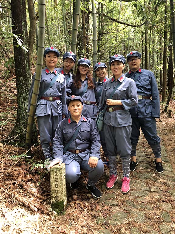 在体验式教学环节,通过开展组建队伍,风雨同行,抢滩登陆、伤员救护、自做红军餐、重走朱毛挑粮小道等体验,让学员们亲身体会毛泽东、朱德带领红军战士战胜困难,取得胜利的来之不易。