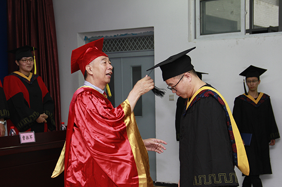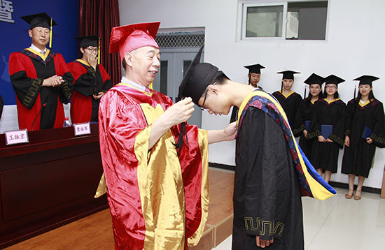 张晓辉、傅恒杰等学院领导为毕业生颁发毕业证书、学位证书。傅恒杰为毕业生授礼。他将毕业生学位帽上的流苏从右侧拨到了左侧,标志着他们顺利完成学业,即将奔向更加广阔的天地。