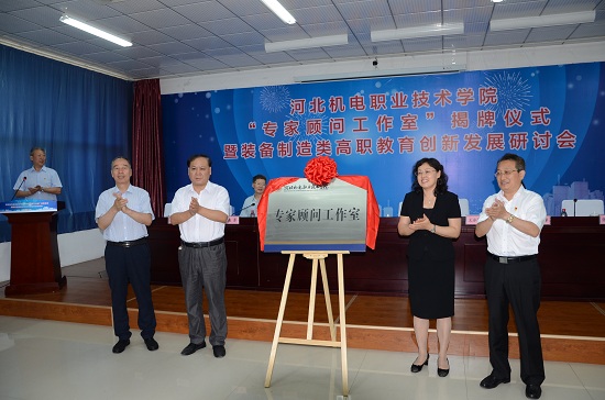 郑丽梅、王冰海、张晓辉、傅恒杰为河北机电职业技术学院“专家顾问工作室” 揭牌。