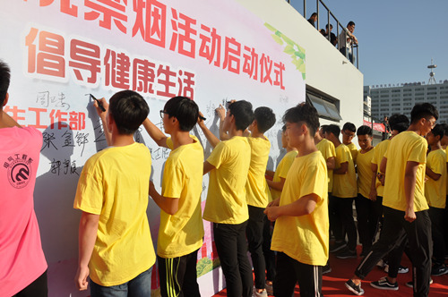 最后,学院领导、老师和同学们在禁烟背景墙上郑重签下名字,做出承诺,从这一刻开始,从我做起、挑战自我,为自己更为他人,立即行动起来,严格遵守控烟条例,为营造无烟校园环境、建设绿色文明校园贡献力量。