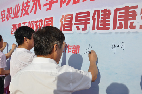 5月31日,以“创建无烟校园,倡导健康生活”为主题的禁烟活动启动仪式在田径运动场举行。学院副院长赵国增出席大会并发表讲话,学生工作部、团委、各系部负责人、辅导员、班主任及学生代表等共计3000余人参加活动。