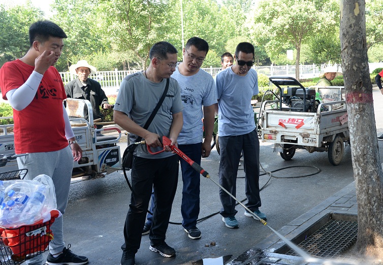 学院组织机关支部和机械系300余名师生,出动了洒水车、清扫车、高压喷枪等设备,对所属负责路段和校园路面、楼顶、大门口、两侧便道、公共设施等场所进行了全面清洗,街道环境和校园内的卫生面貌焕然一新。