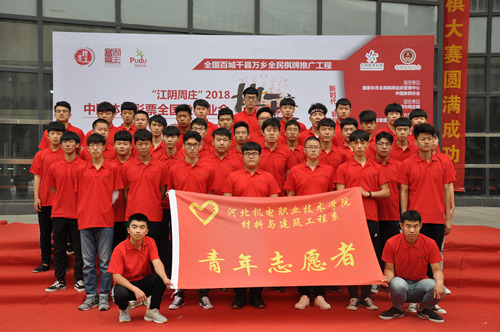 5月19日,由中国象棋协会、河北省体育局棋牌运动管理中心主办,河北机电职业技术学院、邢台市象棋协会承办的2018中国体育彩票全国象棋业余棋王赛暨“河北机电职业技术学院杯”象棋大赛在我院落下帷幕,副院长赵国增、邢台市象棋协会会长刘俊、副会长岳志斌、学生工作部部长周卫忠及盛世地产总经理刘佳林出席开幕式。