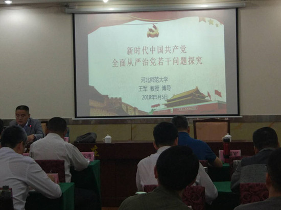 5月5日上午,王军教授作《党的十九大全面从严治党新理念新部署》报告