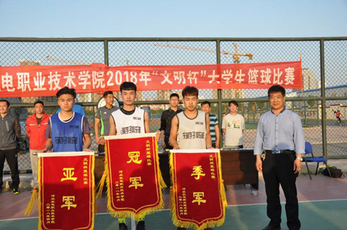 为贯彻落实党的十九大精神,促进校园体育文化活动的蓬勃开展,营造健康和谐的校园氛围,历时二十多天的2018年“文明杯”大学生篮球赛于5月3日圆满落幕。副院长赵国增出席大会闭幕式并为获奖球队颁奖。