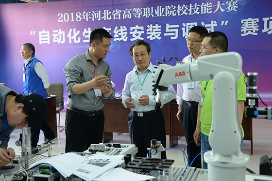 4月19日-21日,由河北省教育厅、河北省财政厅、河北省人力资源和社会保障厅、河北省工业和信息化厅联合主办、河北机电职业技术学院承办的“河北省高等职业院校学生自动化生产线安装与调试及现代电气控制系统安装与调试技能大赛”项目于我院成功举办。比赛分为理论考核和技能测试两部分,共有来自全省15所院校66名选手参加了比赛。我院党委书记张晓辉亲临比赛现场观摩指导工作。