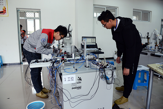 大赛由河北省教育厅、河北省财政厅、河北省人力资源和社会保障厅、河北省工业和信息化厅联合主办、河北机电职业技术学院承办。比赛分为理论考核和技能测试两部分,共有来自全省15所院校的66名选手参加了比赛。其中“自动化生产线安装与调试”赛项参赛12所院校,选手38人,我院派出两支队伍共4名选手;“现代电气控制系统安装与调试”赛项参赛10所院校,选手28人,我院共派出3名选手。