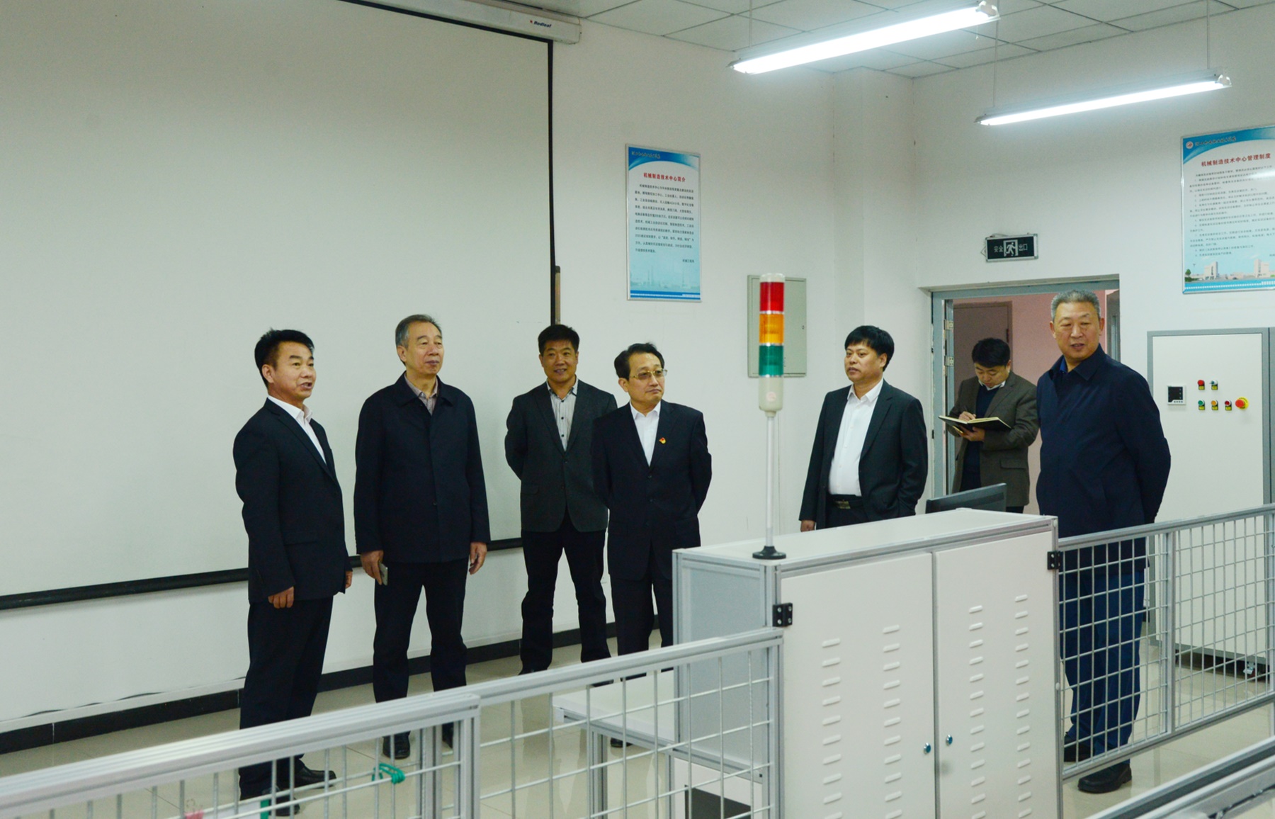 院领导首先来到了国家数控技术技能型紧缺人才培养实训基地,视察了各种生产型实习设备。实习实训中心占地5800平方米,150多台套设备,价值2300余万元,是河北省机电类专业生产性实训基地、河北省金属材料加工及数字化成型应用技术研发中心。近年来,实习实训中心以教学为主,承担了实践教学任务,为培养学生的实践动手能力发挥了积极作用。实习实训中心积极服务区域经济,与河北兴盛机械有限公司、中钢集团等单位开展深度合作,为河北光环节能设备有限公司研发的普及型智能焊机获2017年邢台市科技进步一等奖。