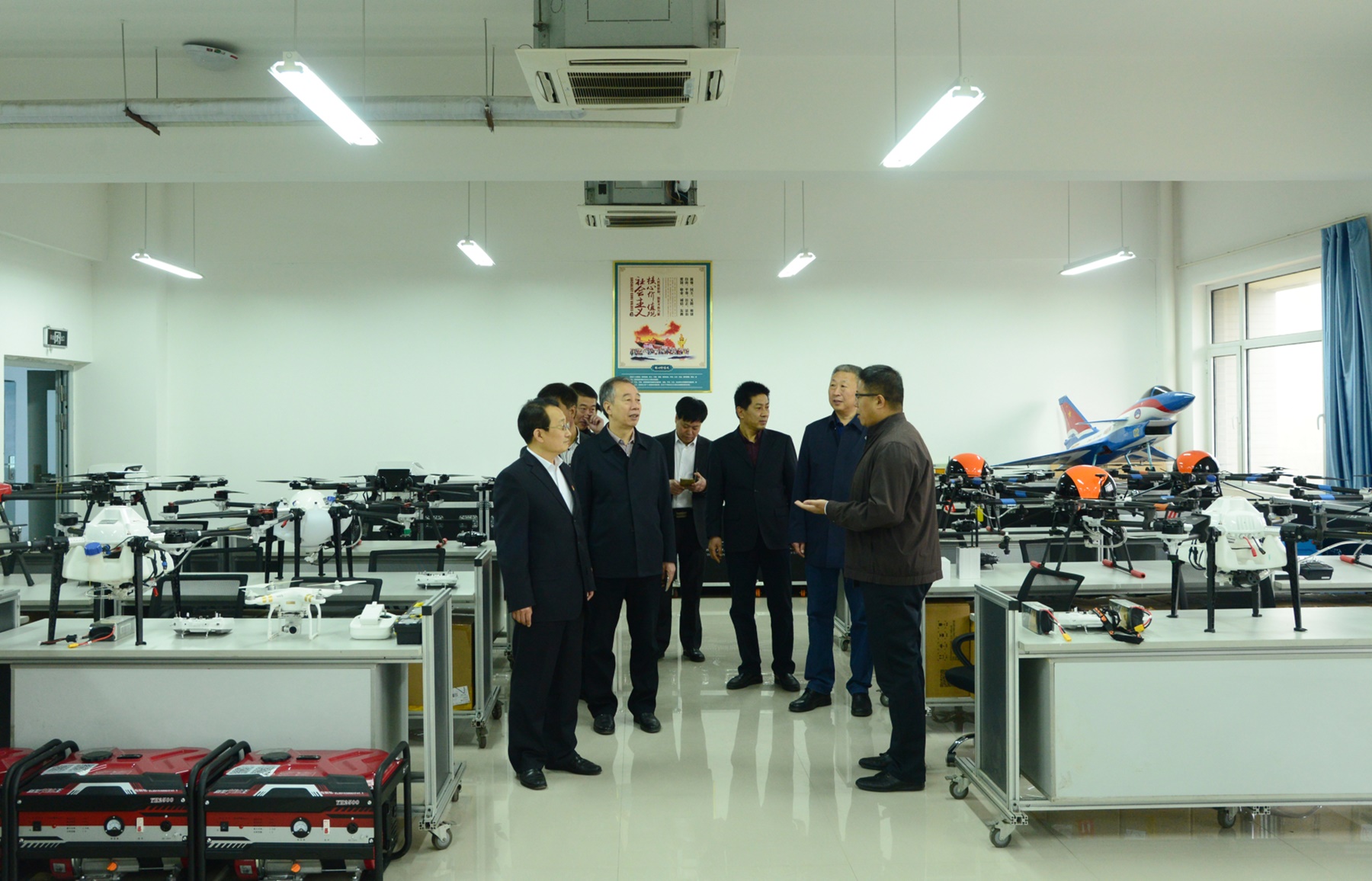 在中央财政投资建设的国家级电工电子与自动化技术实训基地,院领导视察了无人机应用技术专业模拟及装配操控实训室、无人机设备实训室、数字控制实训室和运动控制技术实训室。几百套无人机组装调试设备和各类型航模令人目不暇接。由王如松副教授带领专业教师团队自主研发的“开放式、可视化的数控车床装调维修实训装置”实训设备不仅喜获国家专利,也成为教育部、财政部提升机电一体化技术专业服务产业发展能力建设项目之一。
