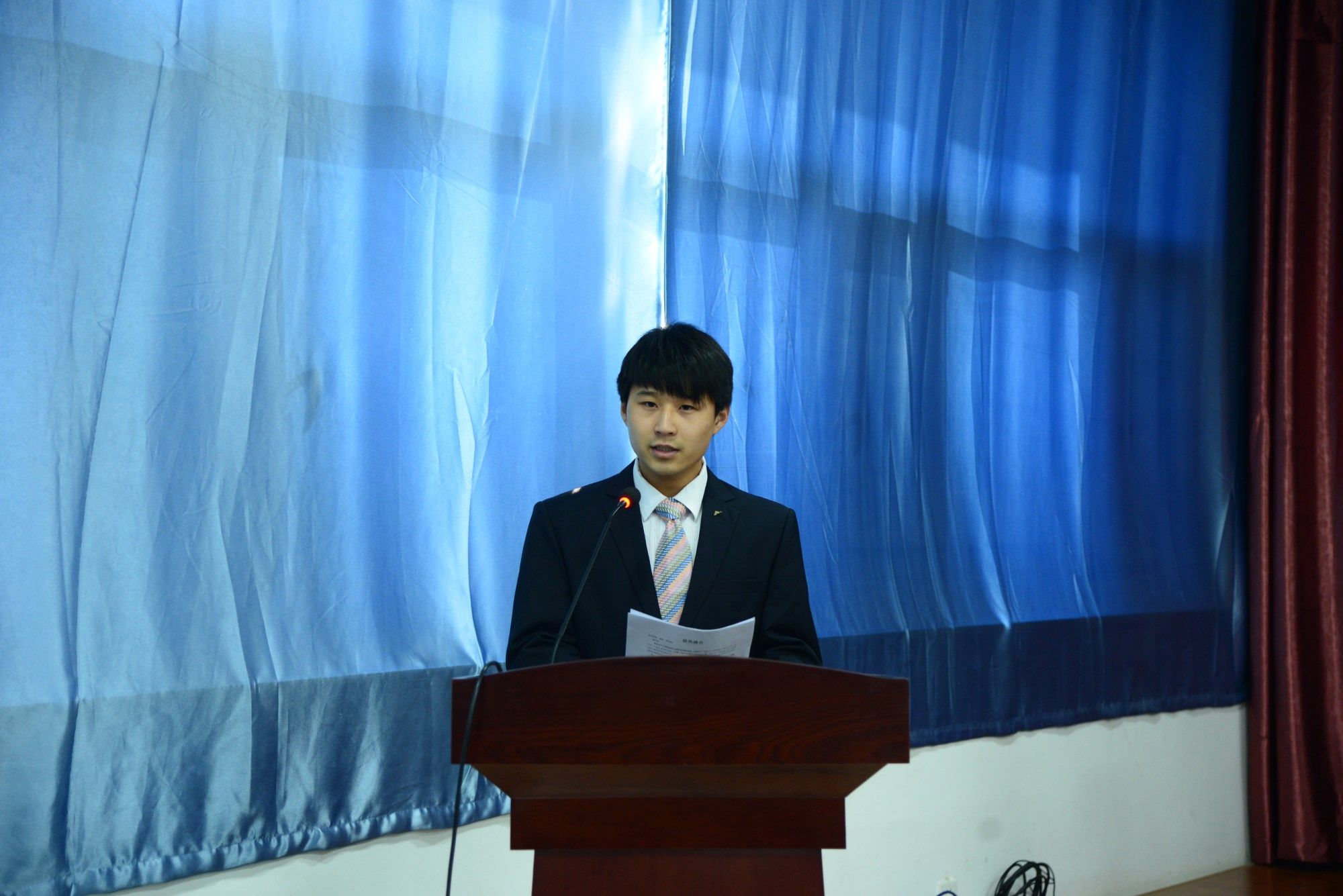 获奖学生代表电气工程系机电1506班郭安起同学发言。他首先感谢了学院领导的重视支持,感谢老师的培养与鼓励,之后以自己暑假备战的刻苦,由一开始自己独立完成项目到最后学以致用并参加大赛获奖的经历,鼓励大家只有坚持才会成功。