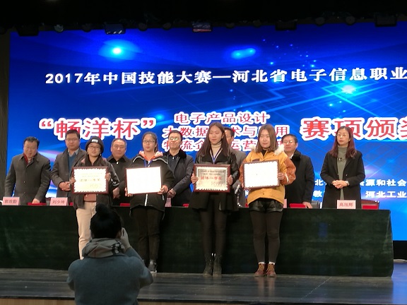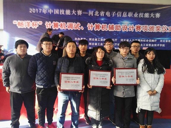 教师李欣、任琰杰、于琦龙等荣获河北省技术能手称号,学生李佳松、赵俊、刘赤等荣获河北省电子信息行业技术能手称号。
