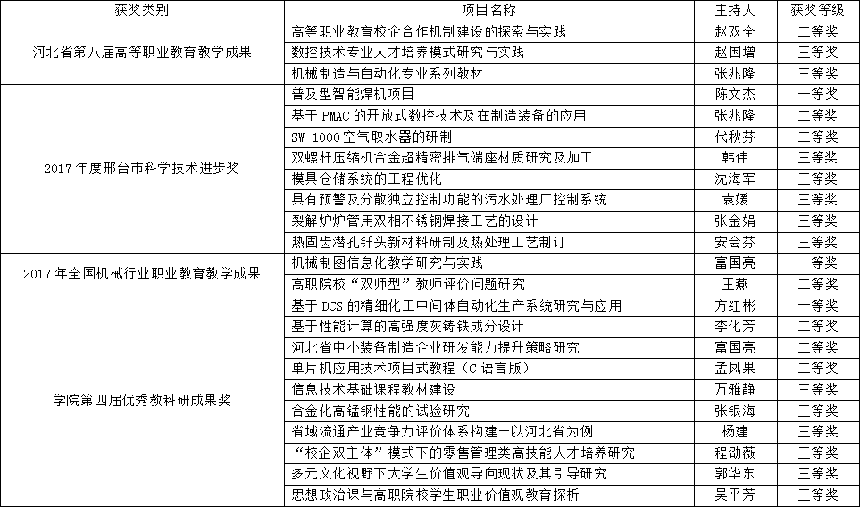 共获各级奖励23项,其中省级奖励3项,市级奖励10项,院级奖励10项,具体获奖情况如下:
