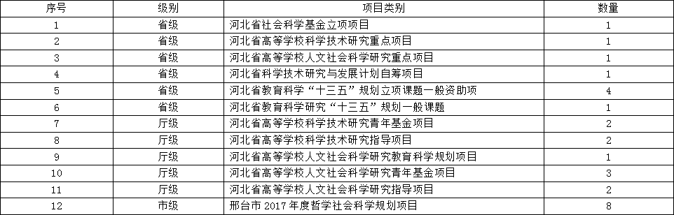 各级各类教科研项目立项44项,其中省级项目立项9项,市厅级项目立项18项,院级项目立项17项,主要项目立项情况如下: