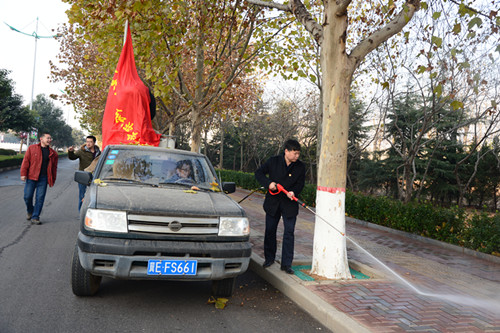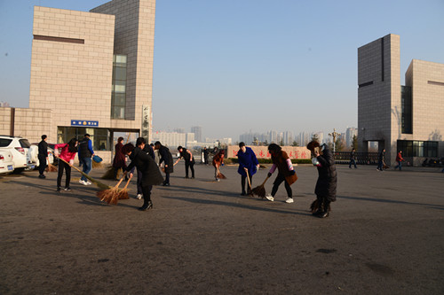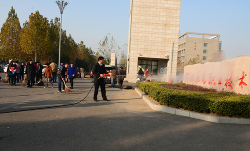 学院负责的卫生区域在泉北大街钢铁路、太行路合围路段北侧。11月27日下午,学院在接到开展“全民洗城”行动的通知后,迅速召集各相关部门下发工作方案,安排部署具体行动。11月28日上午,党委书记菅新月带队,副院长王振京、张兆隆、机关处室工作人员和各系师生员工走上街头完成清洗任务。