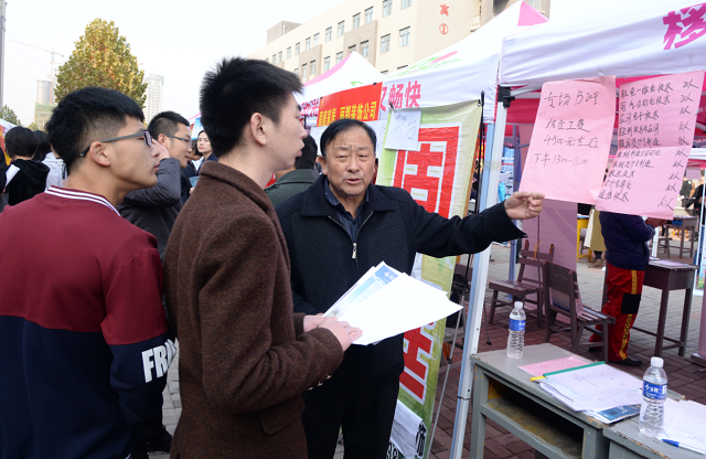 2017年11月5日,我院2018届毕业生大型就业双选会隆重举行。此次双选会是2018届毕业生与用人单位“面对面”交流的一次盛会,来自全国各地412家企事业单位提供7800余个岗位,供需比达到1:3.3,较去年提升8个百分点,招聘岗位涵盖了学院所有专业。
