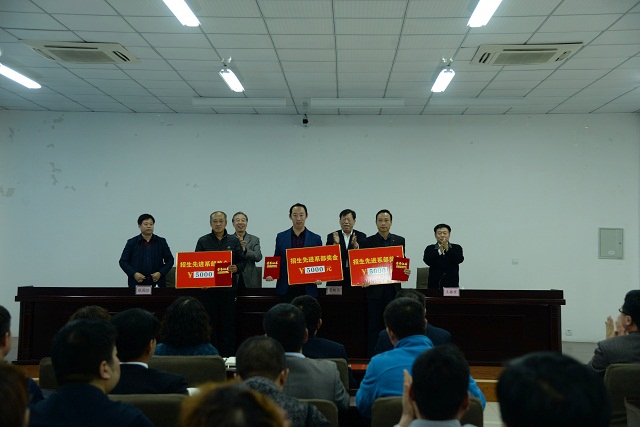副院长张兆隆宣读了学院《关于表彰2017年招生先进系部、先进工作者的决定》。学院领导为先进系部、先进工作者颁发了荣誉证书与奖金。