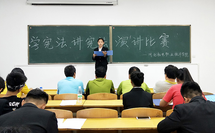 我院为了组织好这次比赛,院法制办、思政部、团委在全院学生中组织开展了河北机电职业技术学院赛区初赛,在各系推选的12名参赛同学中,选拔出参加复赛的同学,进行集中培训,由学院现教中心专门录像推荐到省复赛。最终,郭昊同学获得代表我院参加河北省赛区决赛资格并在比赛中获得优异成绩。