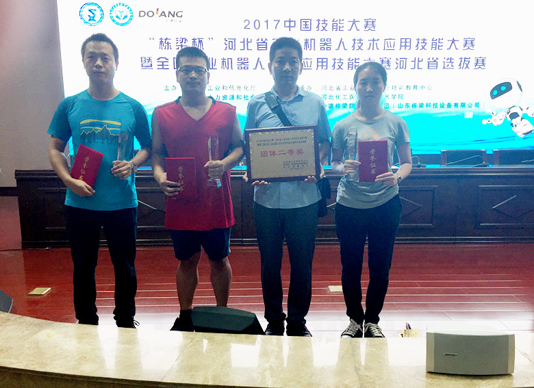 2017年8月10日-13日,我院电气工程系继2016年,再次组队参加了“2017年中国技能大赛—河北省工业机器人技术应用技能大赛暨全国工业机器人技术应用技能大赛河北省选拔赛”,取得优异成绩。其中,范蕊、高健老师荣获职工组一等奖,樊新乾老师获二等奖,三位老师均被授予“河北省电子信息行业技术能手”荣誉称号。郭安起同学荣获高职学生组一等奖,将代表河北省参加全国工业机器人技术应用技能大赛高职学生组比赛,陈飞阳同学获二等奖,两位同学被授予“河北省电子信息行业技术能手”荣誉称号,参赛教师团体与学生团队均荣获团体二等奖。