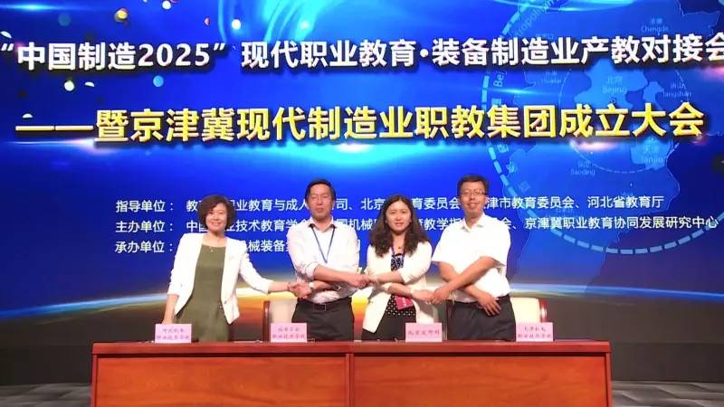 为贯彻落实《中国制造2025》、促进京津冀协同发展、加快现代职业教育建设、服务好国家“一带一路”等重大国家战略。2017年5月8日在天津机电职业技术学院隆重举行了“‘中国制造2025’现代职业教育·装备制造业产教对接会—暨京津冀现代制造业职教集团成立大会”。我院作为河北省装备制造业优秀高职院校,与天津机电职业技术学院、北京工业职业技术学院分别作为京津冀三地代表,被选为“京津冀现代制造业职教集团”副秘书长单位。
